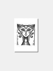 An A5 linocut that's minimal and balanced featuring a creature with fox-like charm. Printed on 250g white paper.